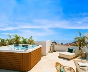 Amplias terrazas, jardines y soláriums en la azotea te permitirán disfrutar del aire fresco, gracias al suave clima de la Costa del Sol. Garajes privados ofrecen espacio para estacionar dos autos, mientras que las áreas comunes ofrecen piscinas, una pista de pádel y un área de juegos para niños.