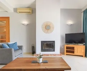 Completamente amueblada y meticulosamente mantenida, la villa cuenta con interiores modernos y chic con una luminosa sala de estar que cuenta con una estufa de leña para proporcionar calor durante las frías noches de invierno, y puertas de terraza que se abren al exterior invitándote a disfrutar del entorno.