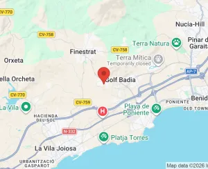 Todos los servicios están a pocos kilómetros de El Balcón de Finestrat: centro comercial La Marina, restaurantes, supermercados, colegios, farmacias y bancos etc