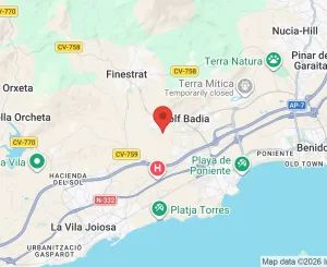 A 10 minutos de las famosas e internacionales playas de Benidorm, y con rápido acceso a otros pueblos mediterráneos con encanto como Villajoyosa, Altea, Calpe.