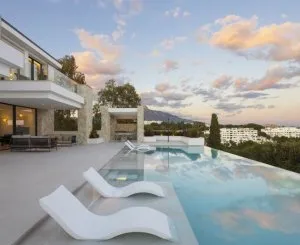 Recientemente terminado, Se trata de una villa nueva, villa de alta definición en venta y situada en un exclusivo desarrollo cerrado de sólo tres residencias de lujo dentro de la zona de La Quinta. Con tres niveles y diseñado para una vida contemporánea sin esfuerzo, esta casa de cinco dormitorios ofrece una mezcla perfecta de sofisticación interior, confort al aire libre y vistas panorámicas sobre el Mar Mediterráneo y la montaña La Concha.