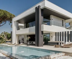 Nichée dans la zone exclusive de Rocío de Nagüeles, cette élégante villa neuve occupe un terrain de 1050 m² entouré de palmiers et de pins. Son orientation plein sud garantit une abondante lumière naturelle tout au long de la journée. Son design est un hommage aux lignes simples et pures, à la lumière, à l'espace, aux matériaux authentiques et aux frontières floues entre l'intérieur et l'extérieur. De grandes fenêtres servent de murs, et des balustrades en verre sur toutes les terrasses permettent de profiter de l'environnement depuis n'importe quel endroit de la maison, en faisant un refuge privilégié toute l'année.