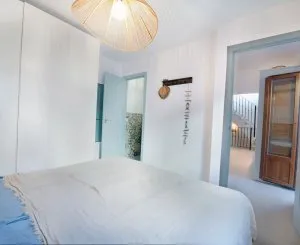 Elle comprend deux chambres climatisées et deux salles de bains, dont une attenante à la chambre principale. La cuisine moderne et linéaire est entièrement équipée. Un coin de la cuisine a été aménagé en charmant bureau pouvant accueillir plusieurs convives et doté d'un banc sur mesure d'un côté.