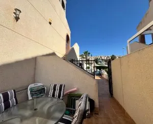 We present this charming townhouse located in the quiet area of Las Filipinas, in Orihuela Costa. With a surface area of 90 m² and a functional design that maximizes space, this property is perfect for both year-round living and vacation enjoyment. It features three spacious double bedrooms and two fully equipped bathrooms, ensuring comfort and privacy for its residents. The kitchen is ready to use and includes all necessary appliances. The southeast orientation allows for excellent natural light throughout most of the day, creating a cozy atmosphere. Additional amenities include hot and cold air conditioning, spacious built-in wardrobes, and a bright balcony where you can relax at the end of the day while enjoying unobstructed views of nearby green areas or even the sea. The exterior does not disappoint: it features a well-maintained garden ideal for spending pleasant moments outdoors; it also has a built-in barbecue perfect for gatherings with family or friends. It also has access to a communal pool located within the residential complex. Its location is unbeatable; Located just 5,000 meters (5 km) from the nearest beach, it offers a variety of recreational options, including renowned golf courses and numerous playgrounds ideal for young families. You'll also be surrounded by all the necessary urban amenities, such as supermarkets, regular buses, shopping centers, schools, etc.; with very reasonable community fees of just €280 per year! Don't miss out on this unique opportunity... Contact us today!