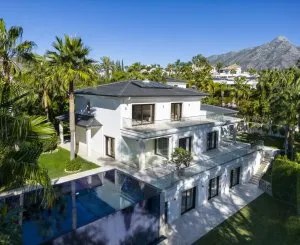 Ощутите себя в эпицентре роскоши с этой виллой на первой линии гольфа в самом сердце Nueva Andalucia. Расположенная на прекрасном участке, эта недвижимость предлагает захватывающий вид на поле для гольфа и гору La-Concha. Утопающая в пышной зелени, с величественным входом и завораживающим ландшафтным дизайном частной подъездной дорогой, ведущей к просторному гаражу на 10 автомобилей.