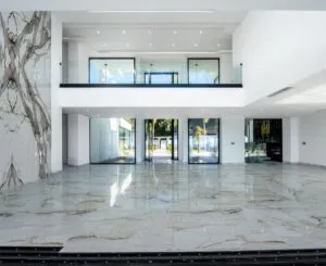 Этот новый дом построен из высококачественных материалов и имеет открытую, светлую планировку, двухуровневые потолки и панорамные окна.На уровне входа находится просторная гостиная с характерным камином, отделанным красивым мрамором, всё в открытом плане и ведущее к кухне с бытовой техникой Gaggenau. Как гостиная, так и кухня имеют доступ на террасу, с которой открывается потрясающий вид на Средиземное море, а также Гибралтар и побережье Марокко в ясный день.